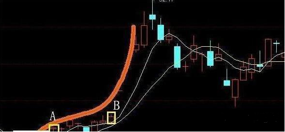 2、盘整时,股价阴阳交错,重心上移,肩部(A点)不得高于颈部(B点)。