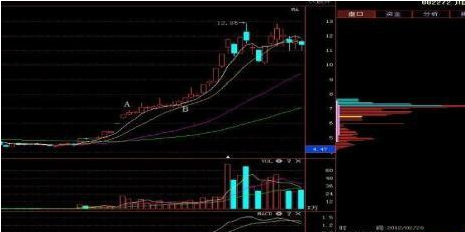 股价在第一波放量建仓之后,往往进入缩量洗盘阶段,这个时候个股将出现分化,对于那些弱庄股将出现回档较深,5、10日均线死叉的情况。