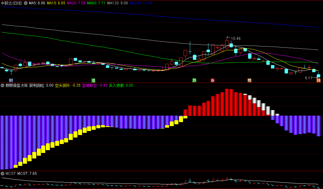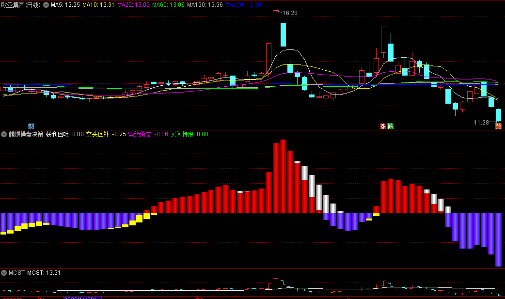 “麒麟操盘决策”听起来高大上,其实它的核心就是通过紫黄柱转红黄柱来判断主力的动向。简单来说,紫黄柱代表主力还在犹豫,而一旦转成红黄柱,就说明主力开始发力了。这就好比你在菜市场看到一个大妈在挑菜,犹豫半天才下手,肯定是看中了什么好货。