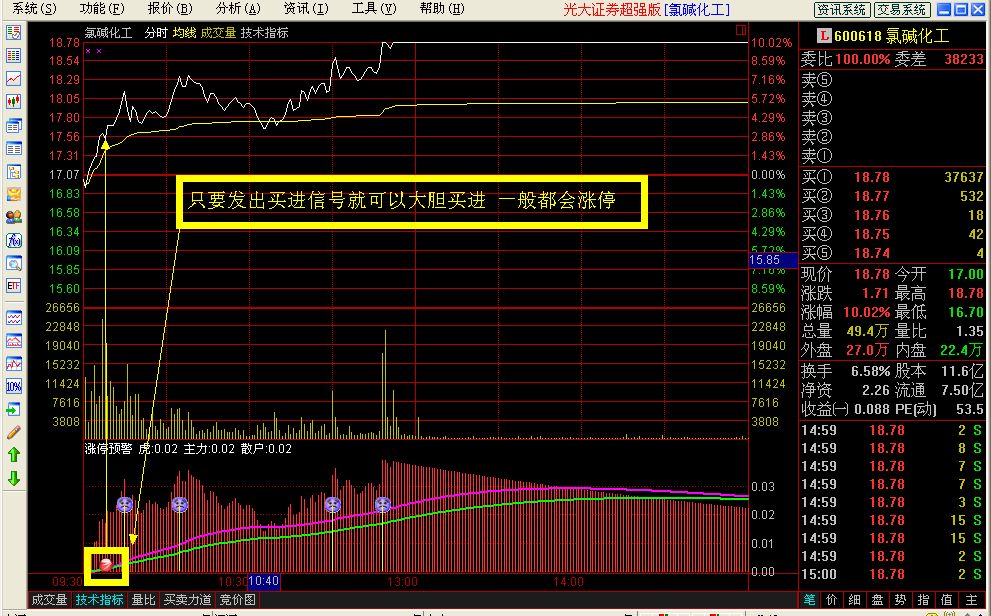 一次偶然的机会,我结识了一位热爱炒股的公务员。他坚信在通达信软件的分时图上无法实现指标预警。为了打破他的疑虑,我现场演示了分时涨停预警指标。
