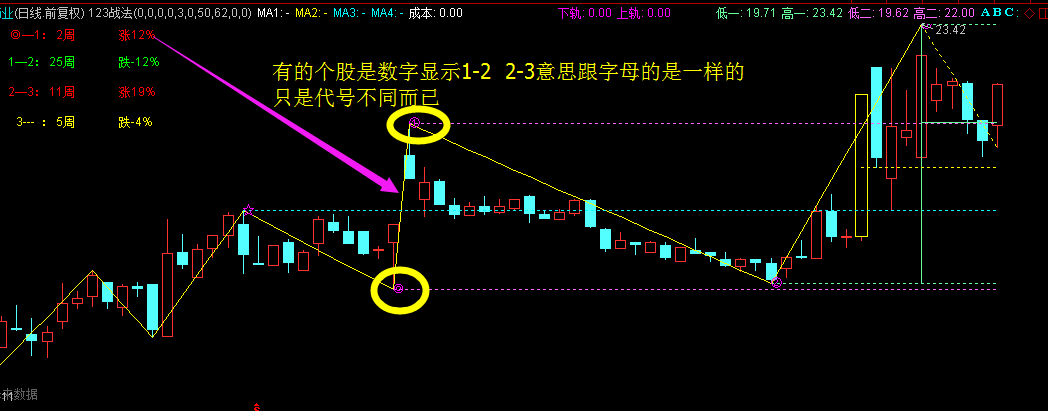 缠论123战法:综合了趋势理论、道氏理论、波浪理论、 缠论等常用的形态结构分析战法。运用通达信特有的画线函数画出波段高低点线段,直观显示K线的形态结构便于投资分析决策。运用独特的函数算法,求出波段高低点的值进行排列对比,从而实现各种形态选股条件。