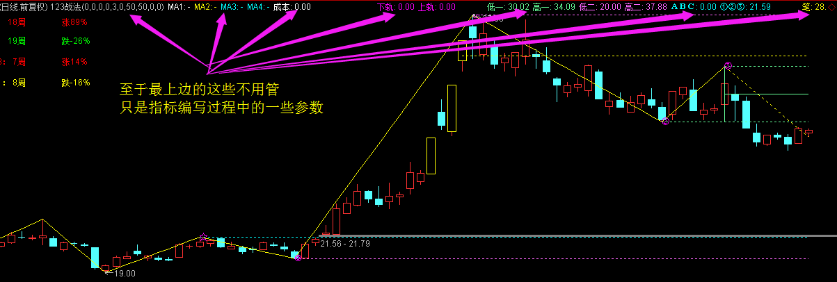 2、画趋势:最近高点与高点、底点与低点连线。【1为显示、0为不显示】