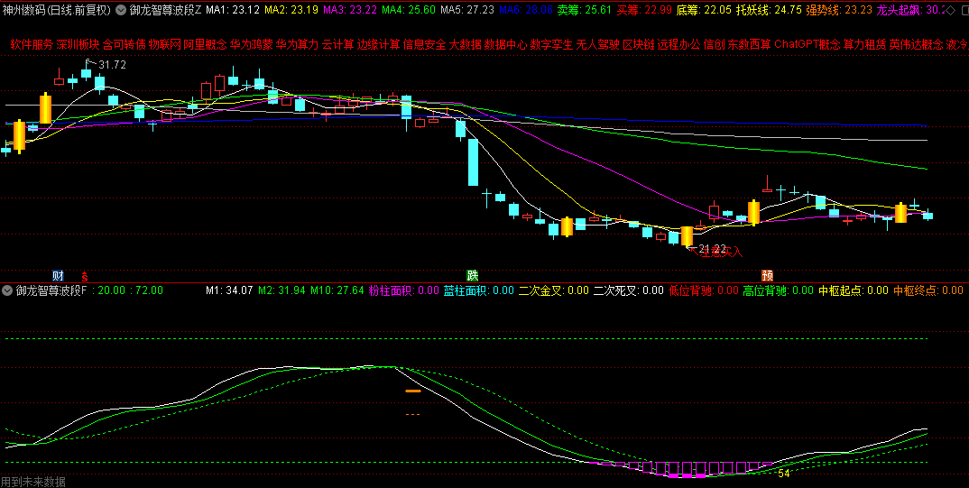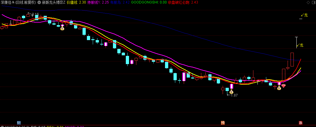 【双龙合体】主图/优化幅图/选股指标,独创双线粘合形态识别,结合MACD金叉确认转折点!核心功能解析:一、主图指标技术特征本指标专为捕捉短期趋势共振信号而设计,具有以下技术特点:1.创新性地采用CCI指标动态参数调整机制。2.集成价格相对高...