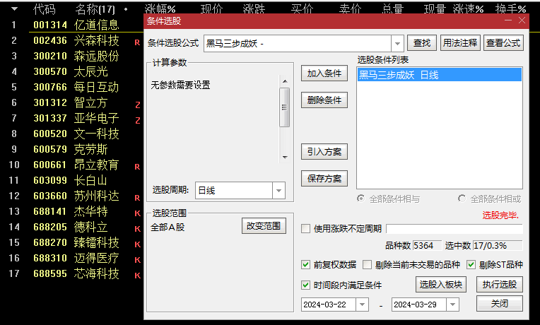 通达信【铁三角2025】副图+选股套装指标,铁三角换手+铁三角顺势+三角霸占,附带使用说明!“铁三角”套系指标,该指标包含三个指标,分别为“铁三角换手”副图指标,“铁三角顺势”副图指标,“三角霸占”选股指标,首先说一下,“铁三角换手”需要用...