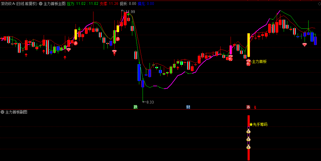 当主图和副图同时出现信号时,大胆上车,如果只是主图有信号,大家结合其他信息可以当天买隔天卖。