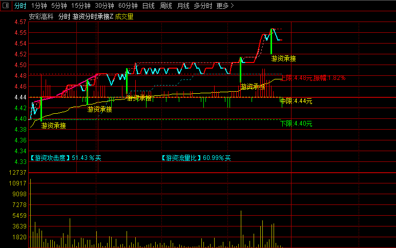 【游资承接】分时主图指标,监控游资动向和分时买卖点,绿色粗柱出现可博弈反弹!