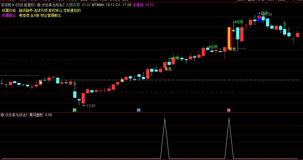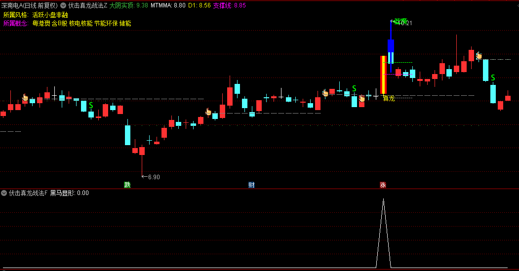技术特征:K线下方出现黄色闪烁的"真龙"标识