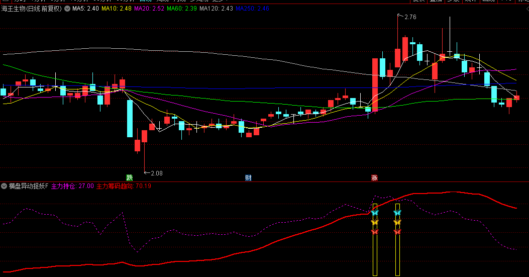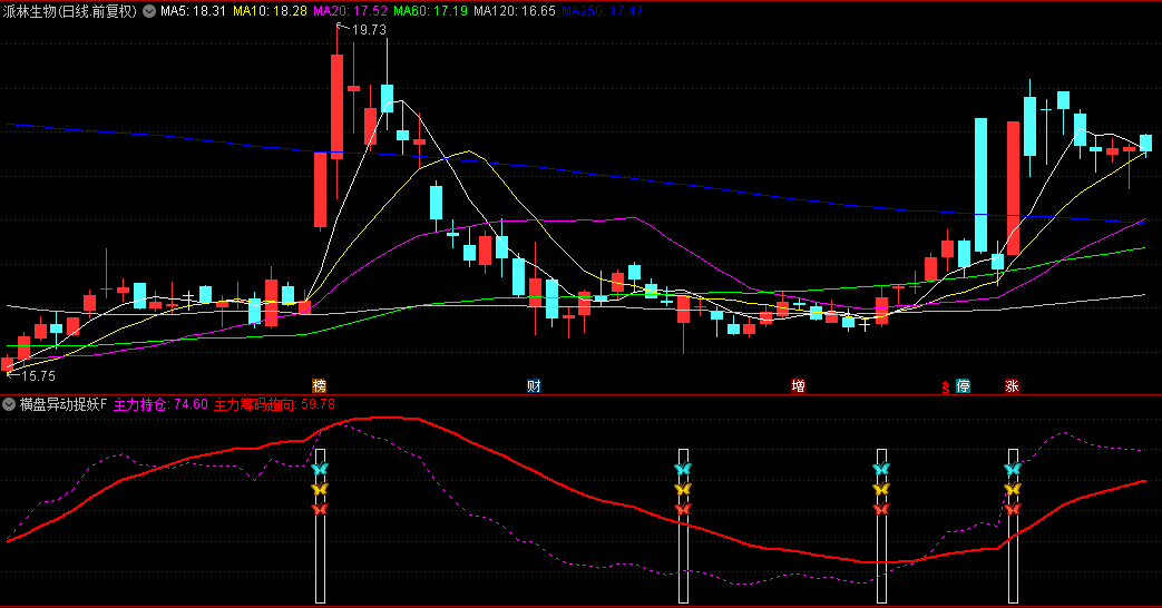 优先选择主力筹码趋势处于上升阶段的个股,主力持仓线数值高于主力筹码趋势线为更优选择;
