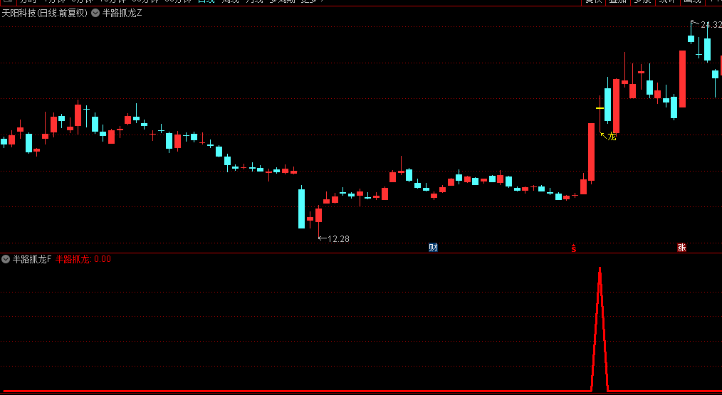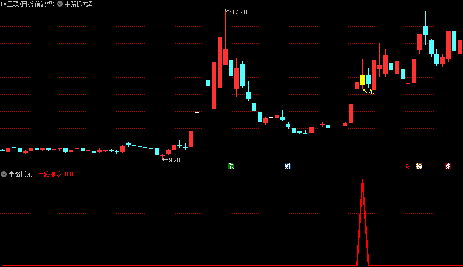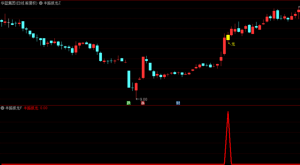 通达信【半路抓龙】主图/副图/选股指标,上涨一段后低位盘整出信号,半路低位抓龙头思路!