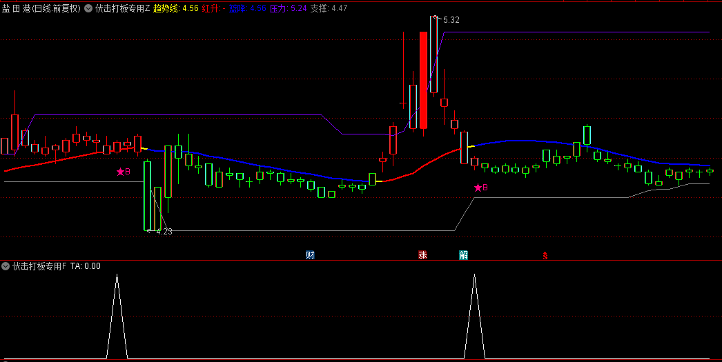 3.止盈策略:当股价接近紫色压力线且出现滞涨时,可考虑分批止盈。