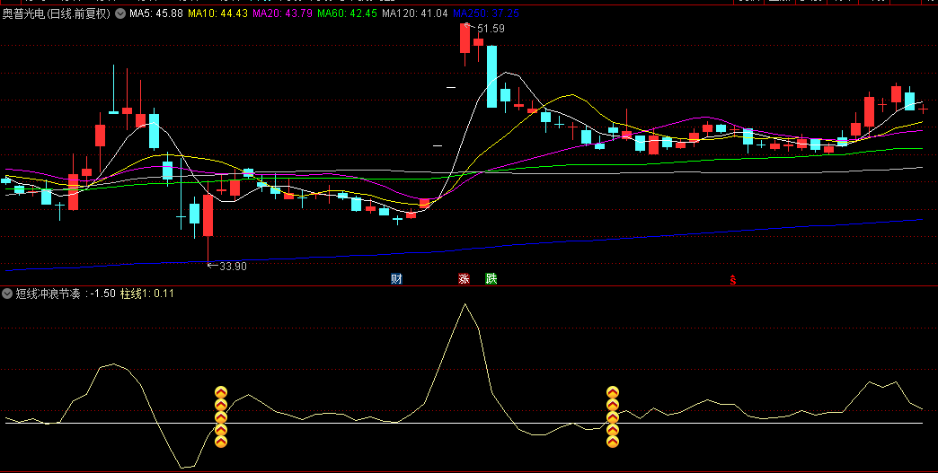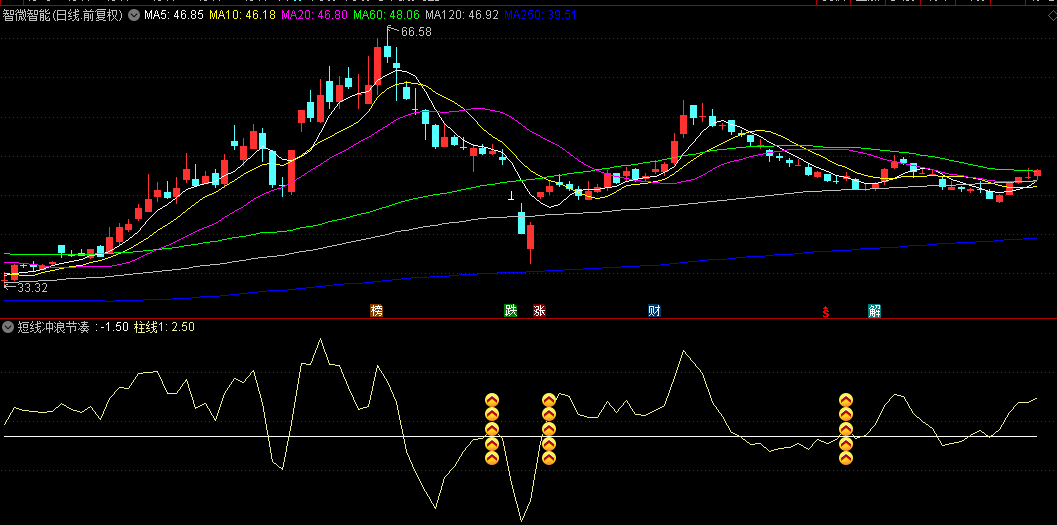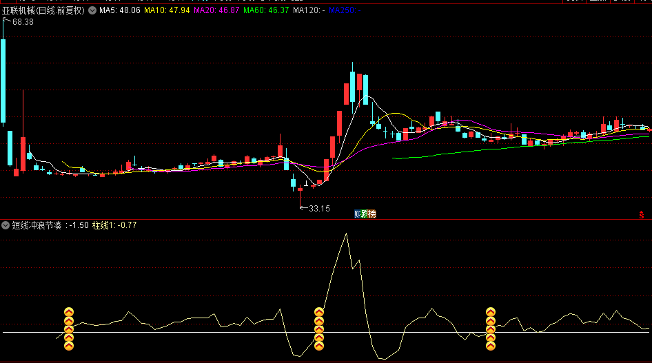 通达信【短线冲浪节凑】副图/选股指标,多重移动平均线组合,多个位置显示买入图标
