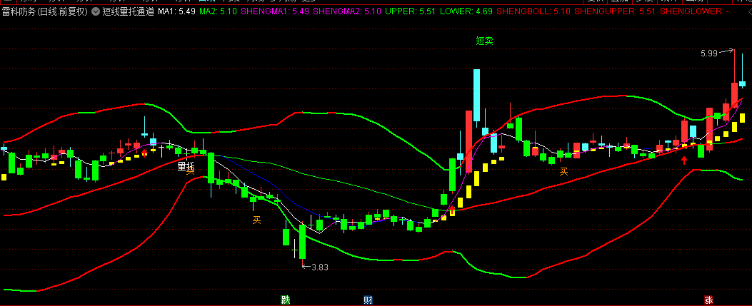 1.当黄色通道出现且5日均线上升时,视为短期强势信号。
