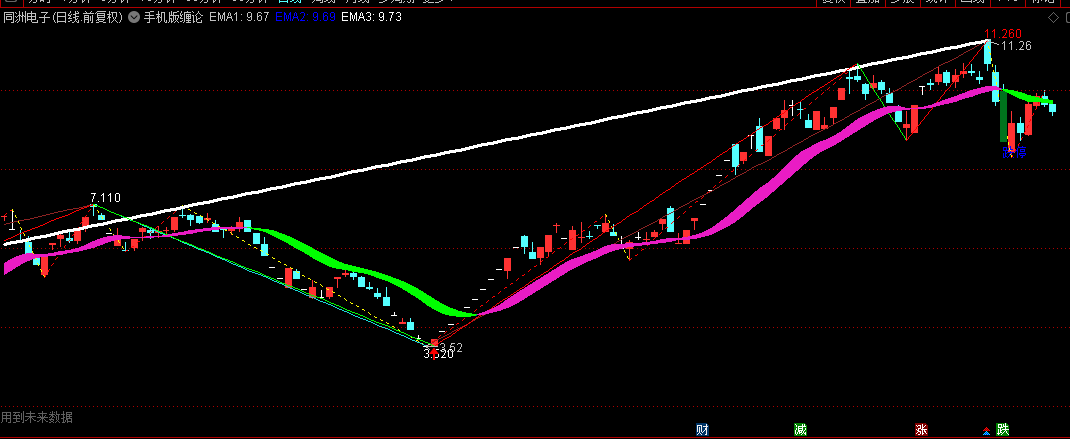 ③风险预警:连续3个分型未创新高,且EMA3均线拐头向下时注意回调。
