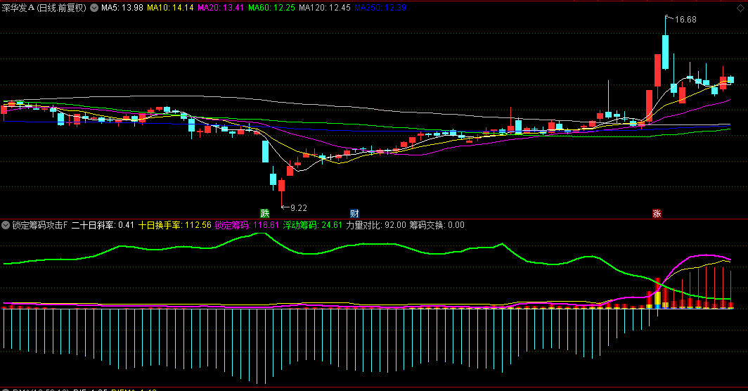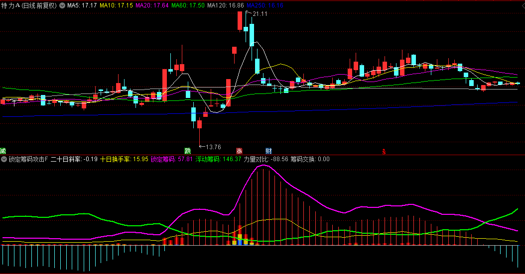 筹码斜率线:反映20日均线的变化速率。