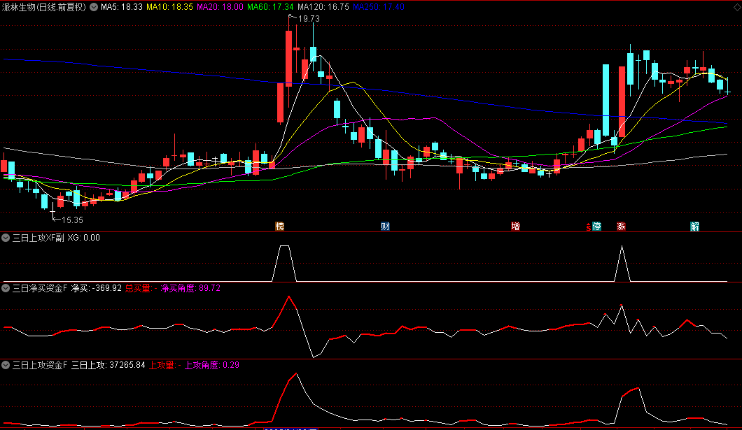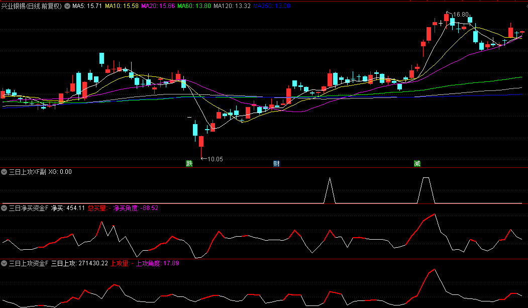 3.三日上攻XF副图:双资金共振分析界面。