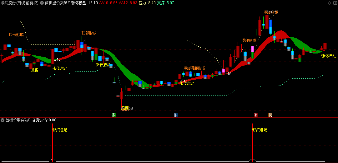 精准识别成交量异动与价格突破的共振现象;自动标记"倍量阳线"、"缩量回调"等关键量价形态;通过量能饱和度指标预判涨停潜力。