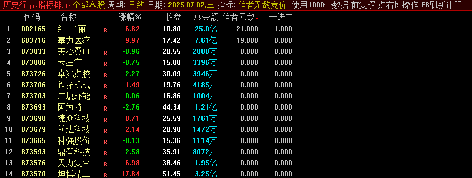 七月份第一贴之【信者无敌竞价】副图/排序指标,量化评估个股潜力,金钻指标物超所值!
