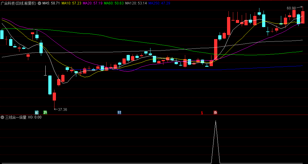 三线合一倍量过前五附图通达信(源码、通达信、贴图)无未来