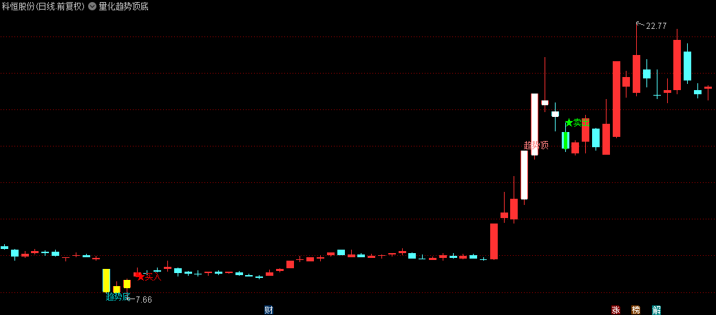 【量化趋势顶底】主图指标,趋势底转折点,买入信号出现在超卖区域且价格开始走强时!