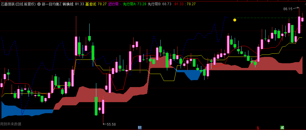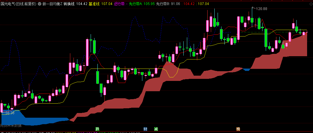 转换线与基准线的动态交叉构成重要的交易触发机制:黄金交叉(转换线上穿基准线)产生买入信号,死亡交叉(转换线下穿基准线)发出卖出警示。这种交叉机制能有效捕捉价格变动的关键转折点,为交易者提供明确的入场指引。