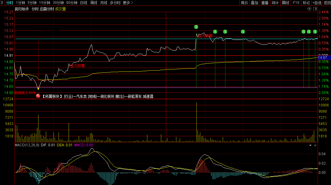【庄赢分时】分时主图指标,二次下探支撑位时触发吸筹信号,伴随量能放大则判定为庄家吸筹!