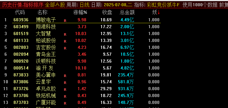 条件选出竞价阶段具备涨停潜力、资金关注度高、流动性充沛且板块效应强的个股,快速锁定有潜力的牛股,源码分享可进一步优化。