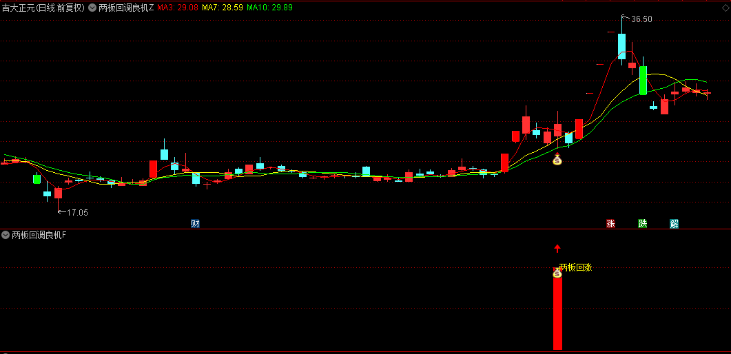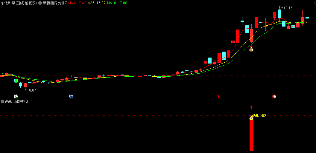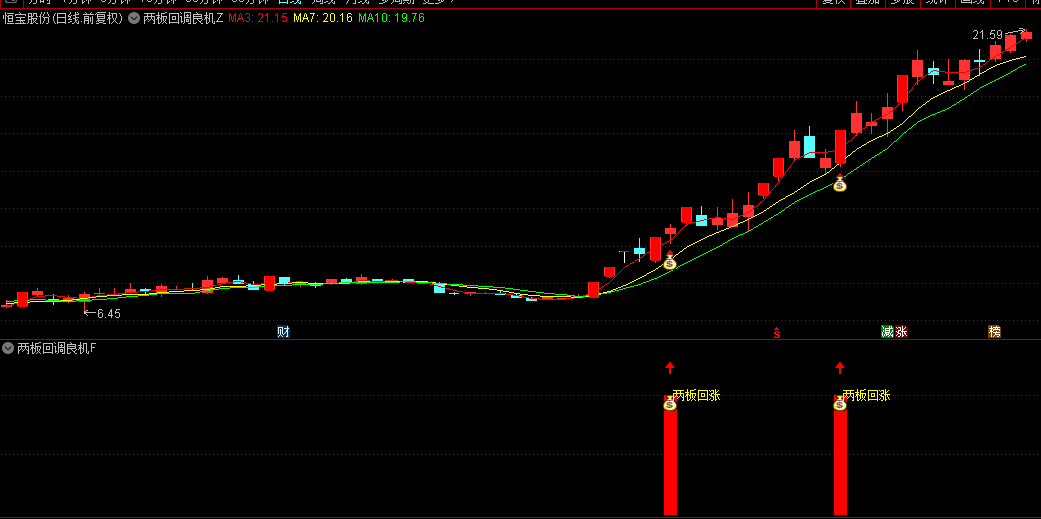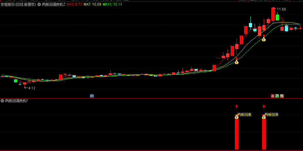 3.文字提示:同步显示"两板回涨"黄色文字提醒。