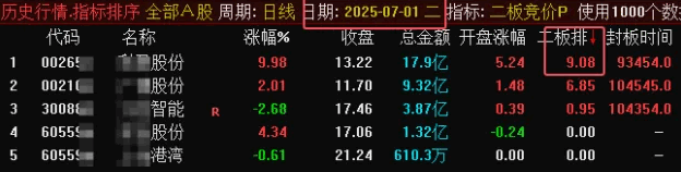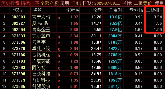 本套指标是针对当下行情的一进二设计的,也就是首板之后,次日博连板的模式,手机端不可用,注意,必须是电脑端使用排序功能;