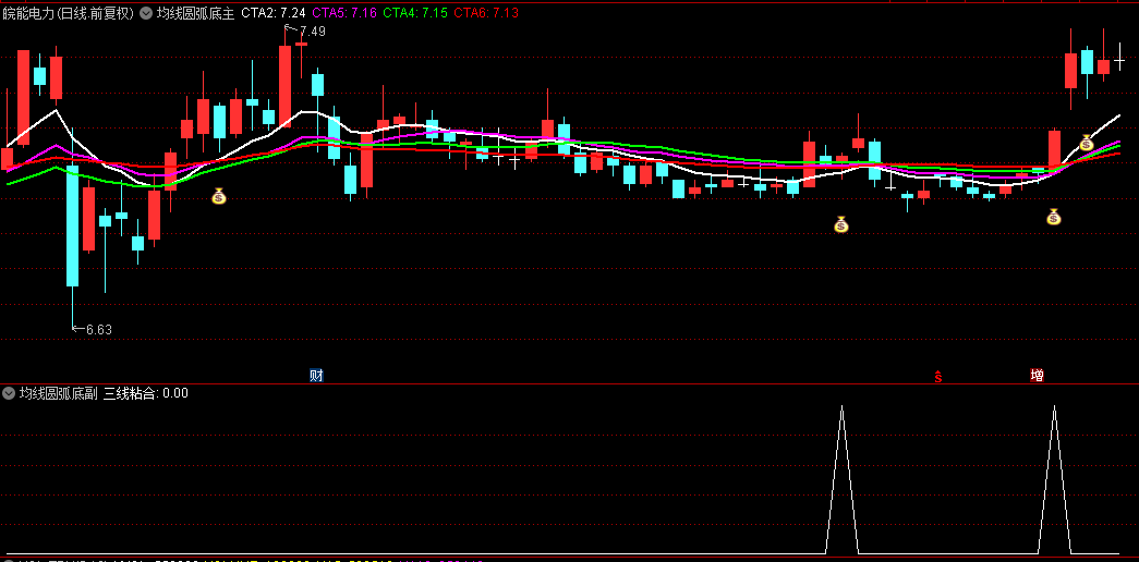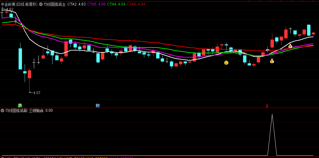 1.白线(4EMA+8MA+16MA复合均线):监测主力短期洗盘动作,对突击资金异常敏感。