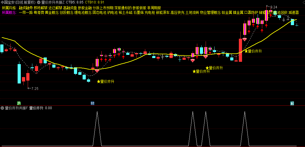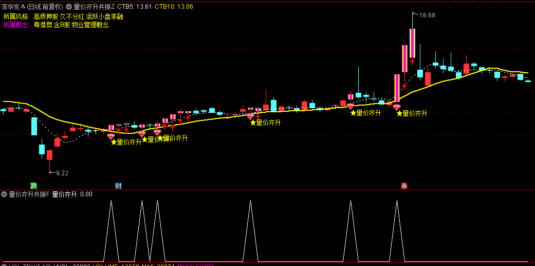 星级标注:在起涨点位置显示★量价齐升提示符。
