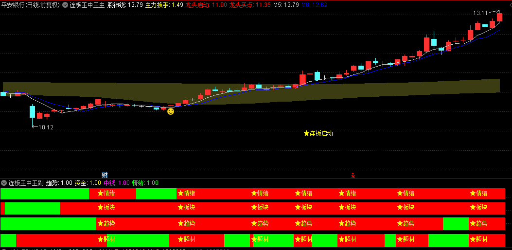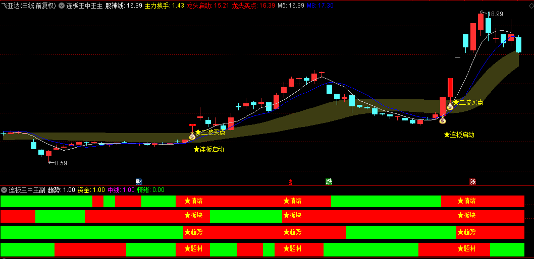 本指标系统专为捕捉强势连板个股设计,包含三大模块:
