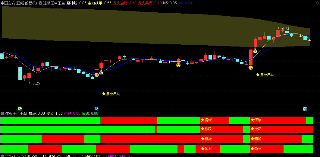 龙头先锋标记:黑K线特别标注潜力龙头。
