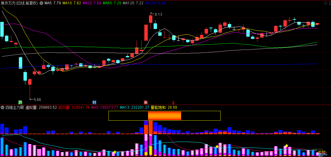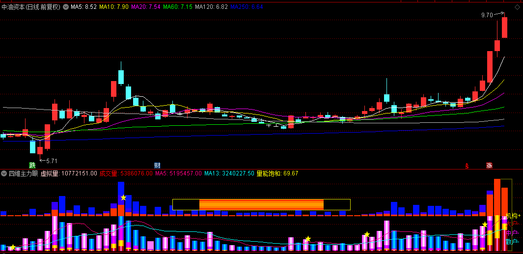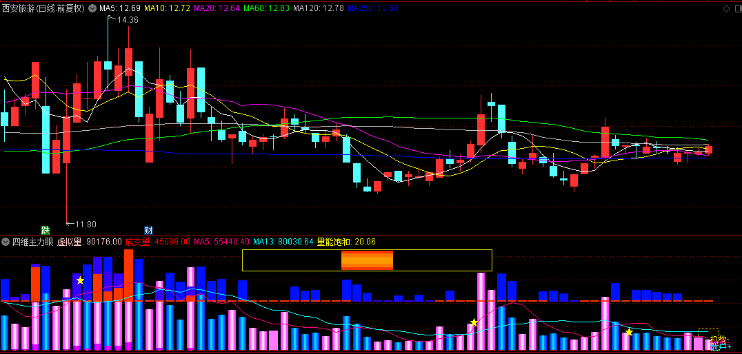 动态预测模块:通过黄色能量柱实时推算当日成交量。