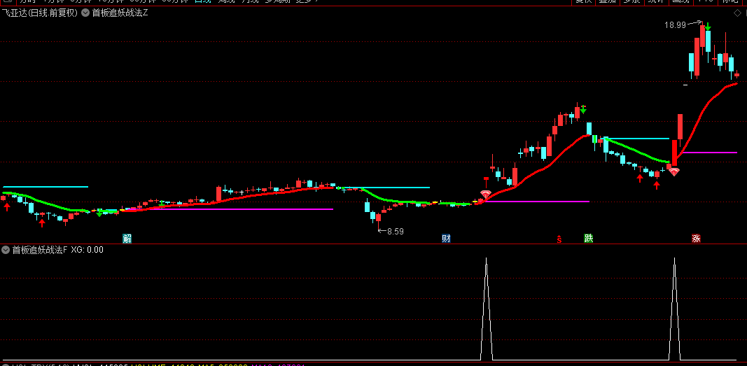 2.副图指标:当出现"XG"信号时,表示符合选股条件。