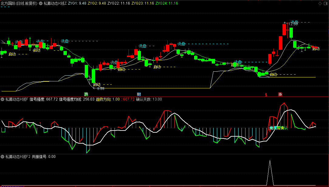私募动态K线主图幅图和选股指标 不含未来函数 智能标识洗盘结束点与行情启动点