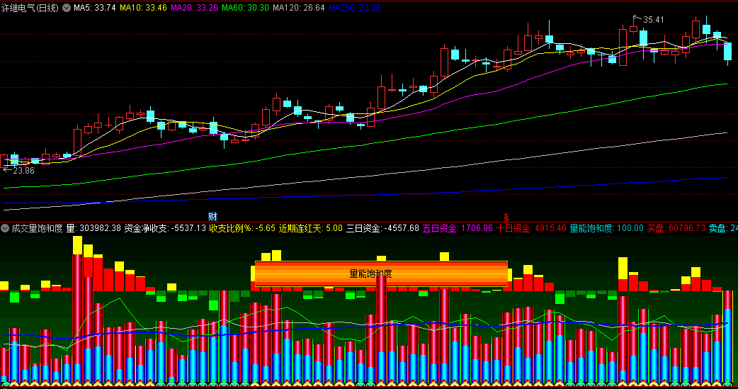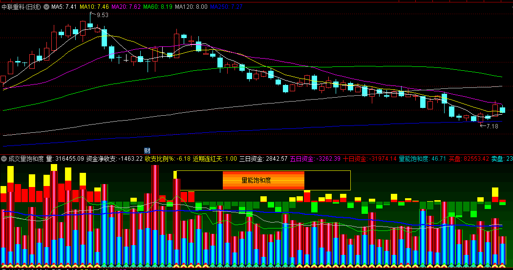 通达信【成交量饱和度】副图指标 表明了市场试图测试某一价格区间的意愿或能力