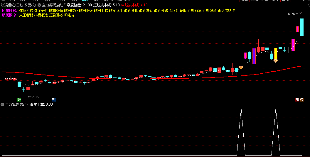 2.副图监控:"跟庄上车"信号连续出现3天以上时,配合主图确认