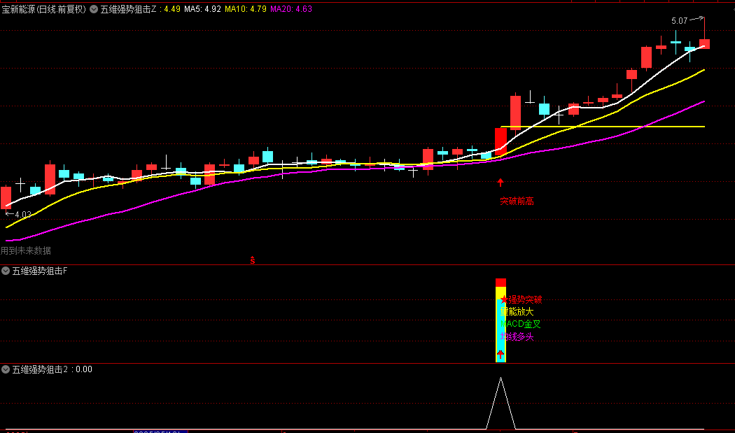 【五维强势狙击】主图/副图/选股指标,价格突破+成交量放大+均线多头+MACD金叉+趋势强度,五重过滤机制!
