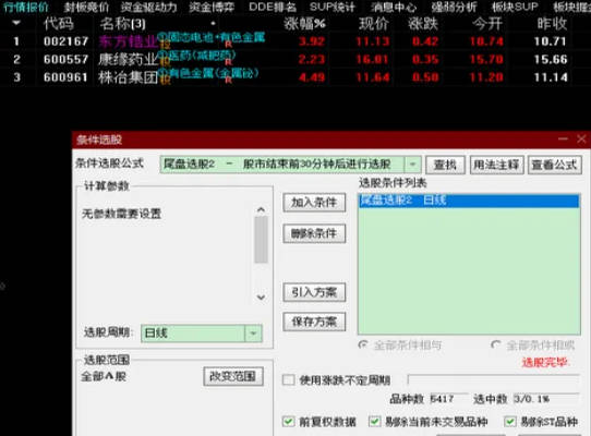 对选出股票做人工过滤,如看好该股,临近收盘前3-5分钟副图信号不消失可介入。第二天冲高就出,不必等到收盘。(指标若用最高价平仓,胜率远大于收盘价平仓,大家可以试试。)如果不能卖在相应高点,也可以等收盘出局。指标胜率虽高,但不代表百分百赢,所以要设置好止盈止损点位,防止深套。