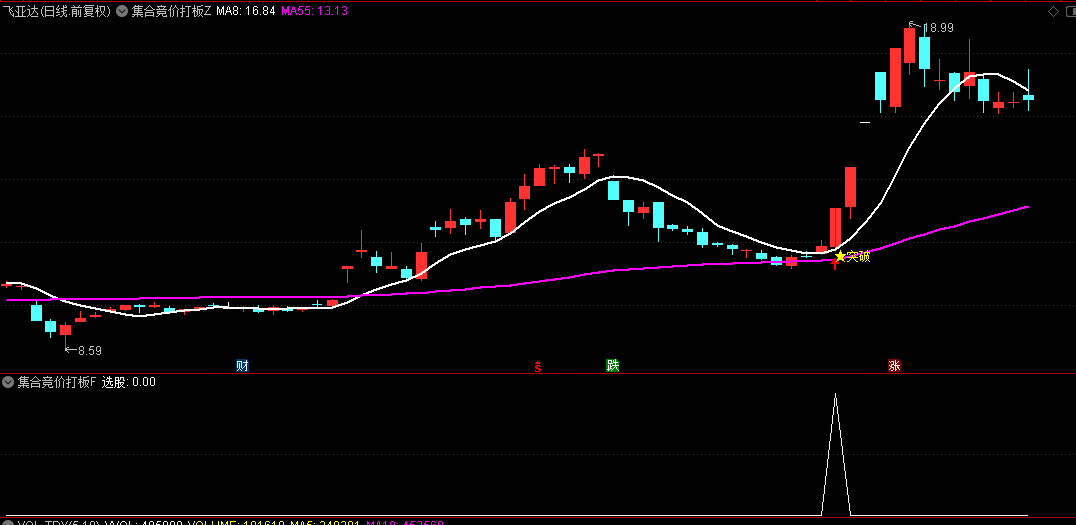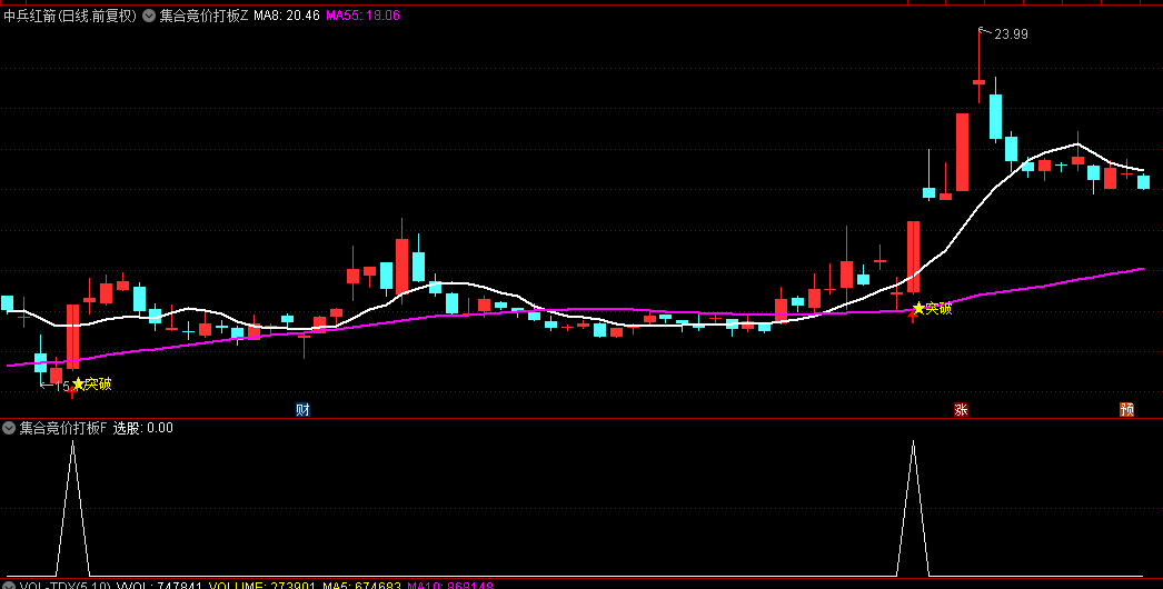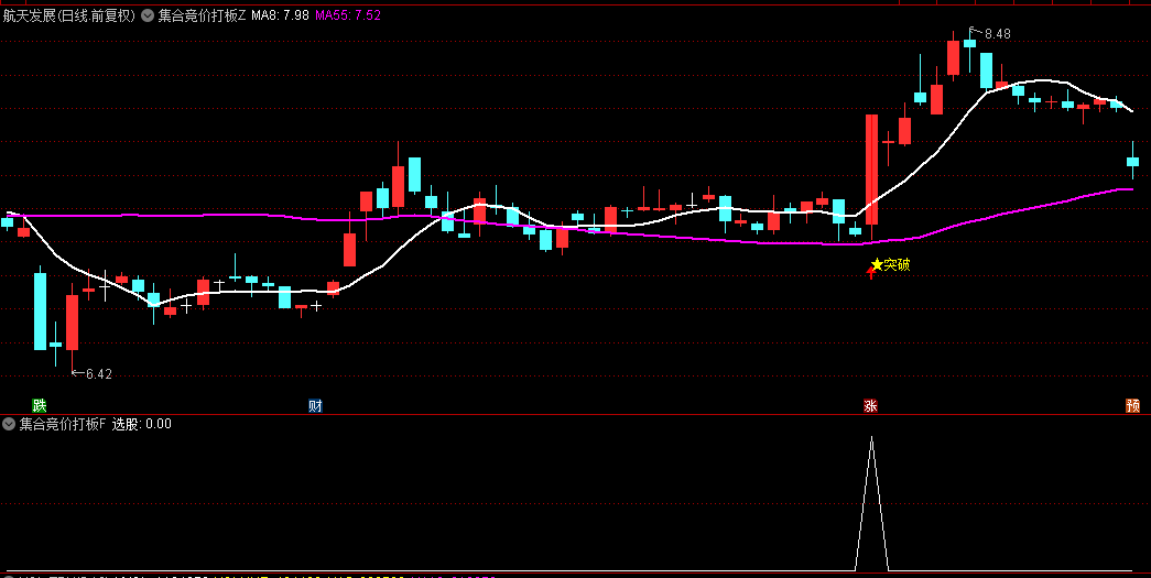 该指标通过8日、55日均线(双龙)结合放量突破、超跌反弹、趋势确认等条件,精准捕捉个股起爆点,帮助投资者在集合竞价、盘中突破时快速锁定强势股。