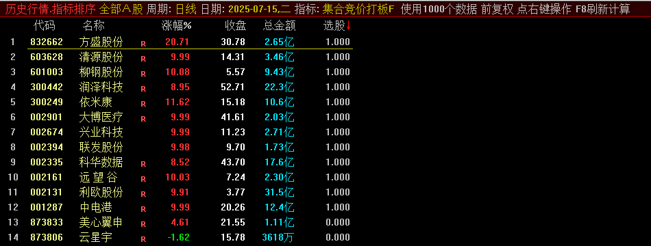 集合竞价打板主图幅图和选股指标,该指标不含未来函数!