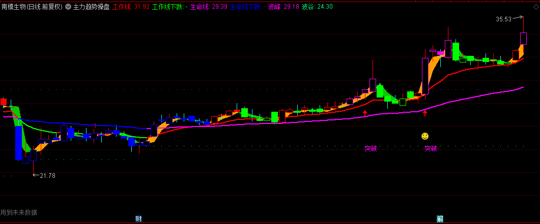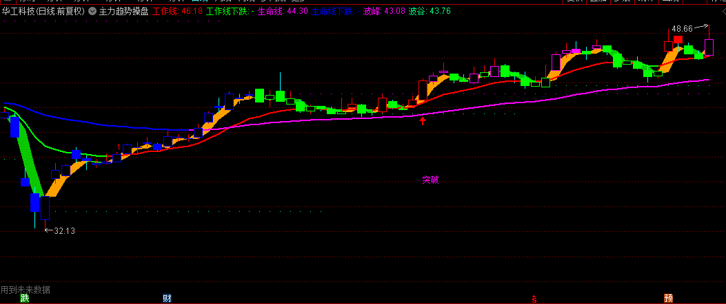 ①波段转折点:自动标记最近10周期的波峰波谷,带量突破前高时触发"突破"提示。
