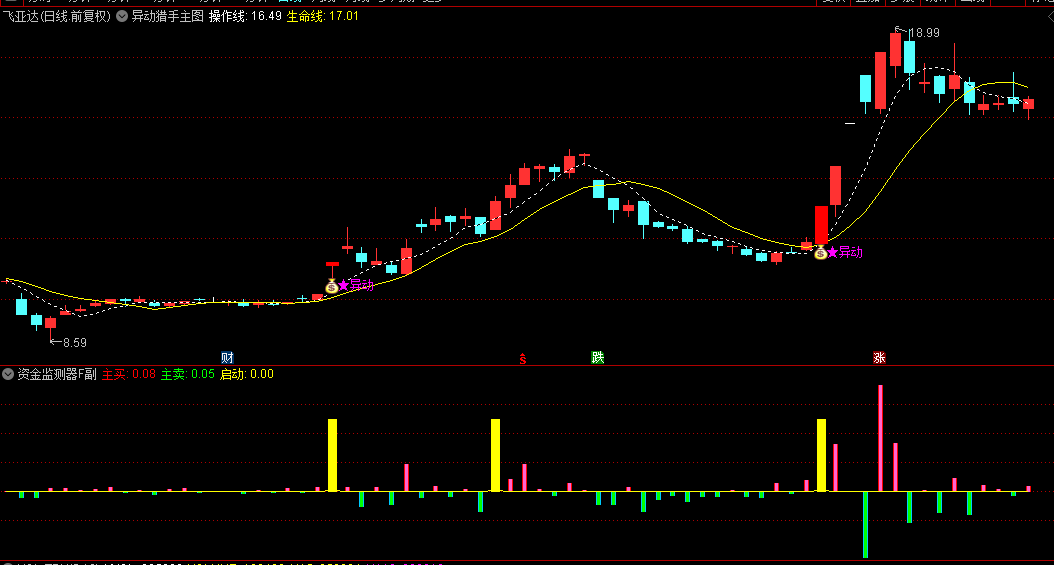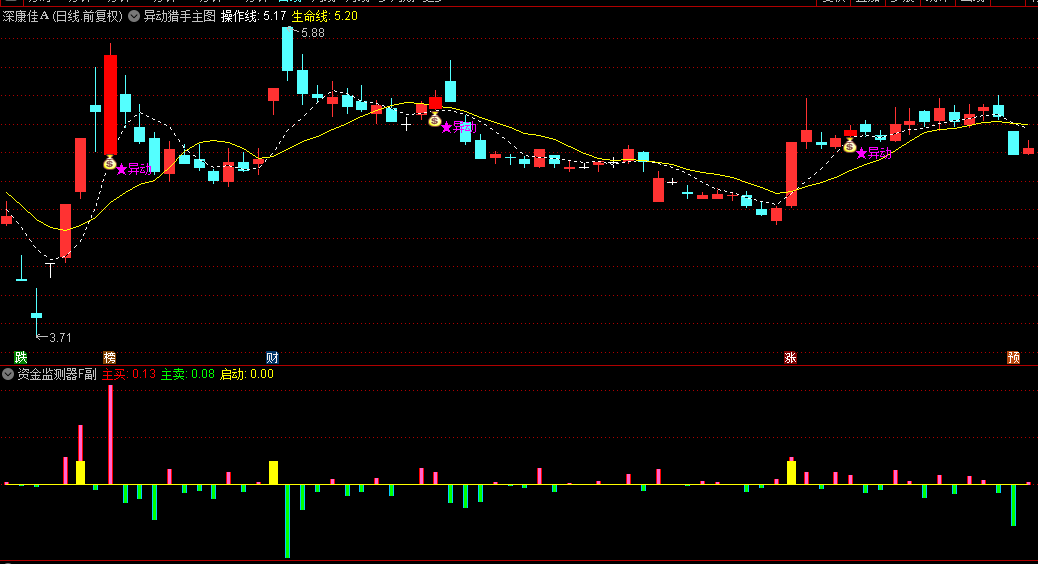 指标采用黄绿柱状图直观显示资金进出情况,无未来函数,信号可靠。
