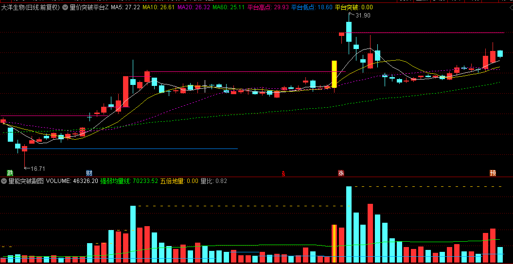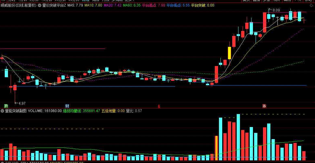 【量价突破】主图/副图/选股指标,双线系统刻画量能波动区间,量价共振突破时信号最强