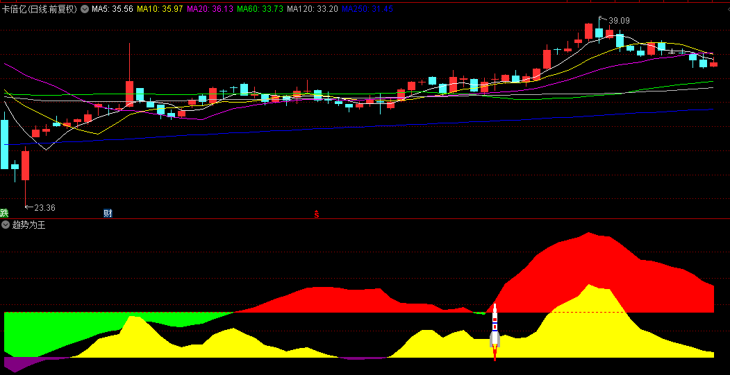 2.紫黄能量带直观显示短期资金博弈状态,零轴上方为多头优势区。