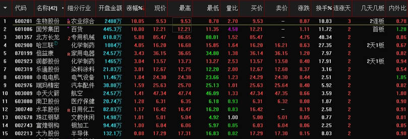 以下是 公式 "码力金矿孪生" 昨天出的42票,在今天里,大部分都翻红,甚至还有2只涨停板了。