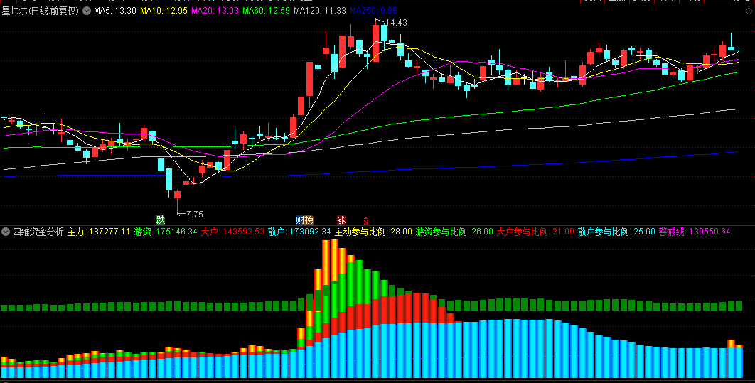 1.主力介入信号:当主力参与度持续>30%且短期均线上穿长期均线时,往往预示强势行情启动。