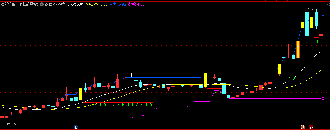 1.动态支撑压力系统:智能标记30日内最高价(压力)与最低价(支撑),并数字标注当前距离关键位的天数,直观呈现价格突破强度。当价格连续多日不破前高压制时,往往酝酿变盘机会。