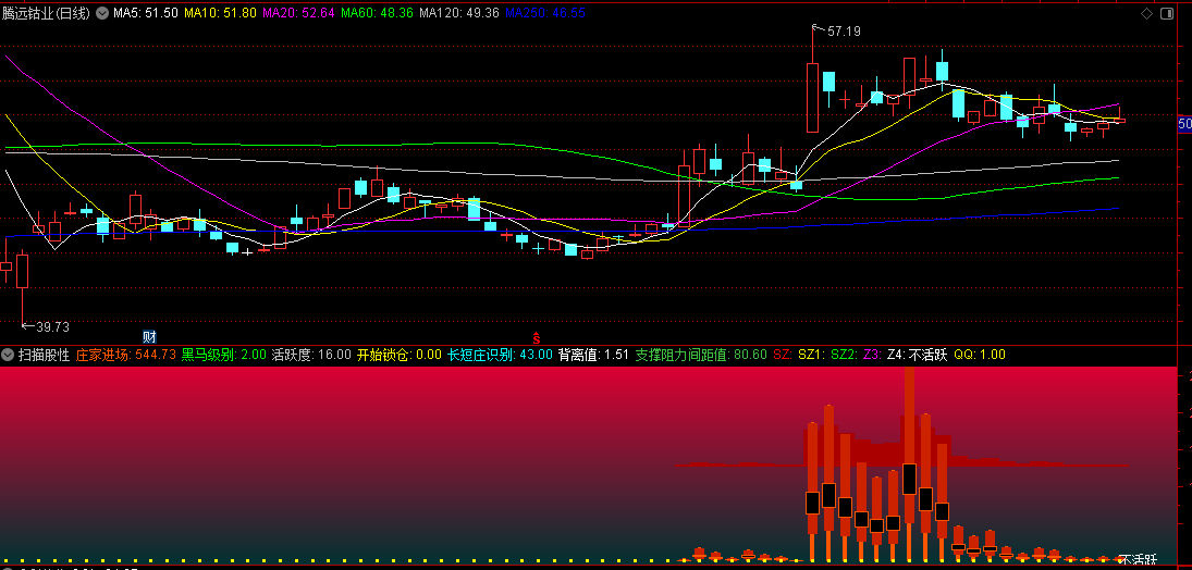 活跃度指标创新性地融合了60日涨跌幅统计与13日涨停基因检测,将个股分为五级活跃梯队。压力支撑系统采用55日KDJ极值重构算法,通过DDDDD与D24的交叉验证关键阻力位。该体系特别适用于识别"高低脚"形态(CC/CC1信号)与趋势加速节点(庄家进场柱状图),其支撑阻力间距值通过30日极差量化波动空间,为仓位管理提供数据支持,完美实现了技术分析的定量化与可视化转型。