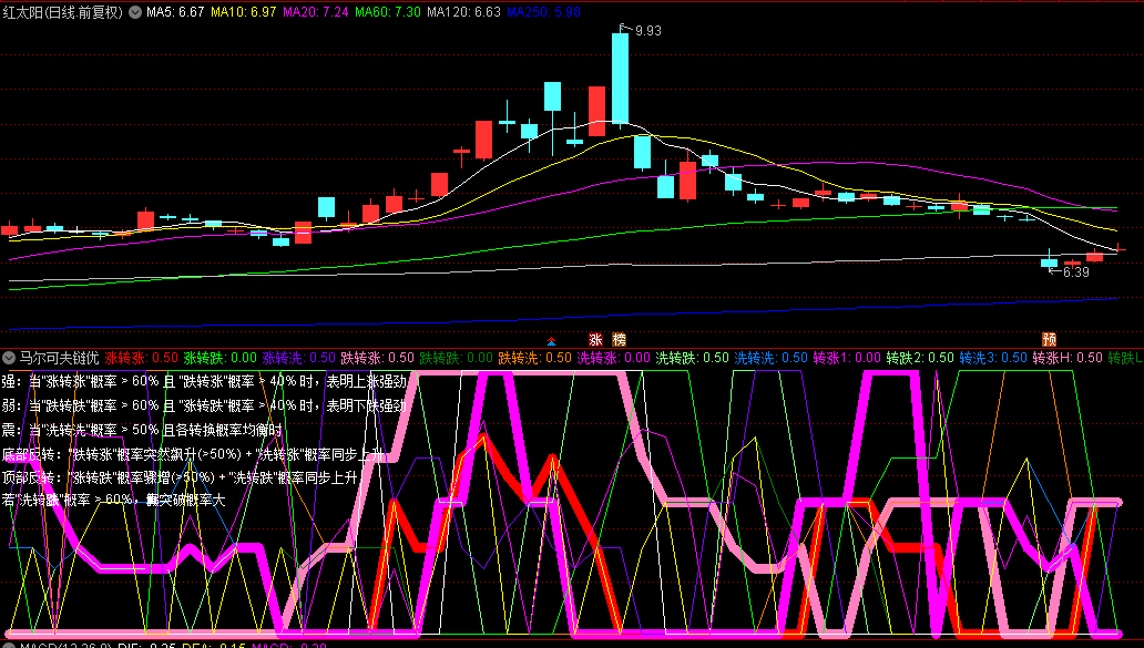 弱势行情:符合"跌转跌"概率>60%且"涨转跌"概率>40%
